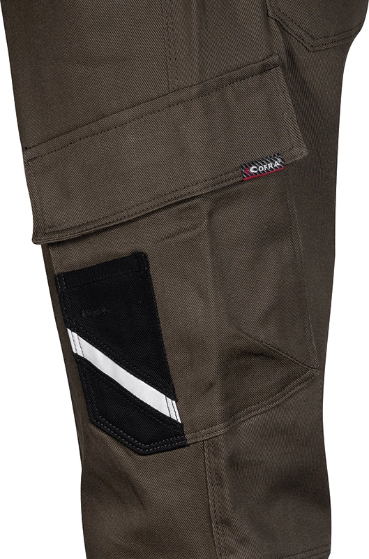 Descrizione:ampie tasche anteriori, elastico in vita, tasche laterali chiuse da pattina di cui una con taschino-porta attrezzi, inserto riflettente, doppia tasca posteriore di cui una chiusa con pattina, taglio ergonomico di gambe e ginocchia, tessuto ad elevata percezione elastica